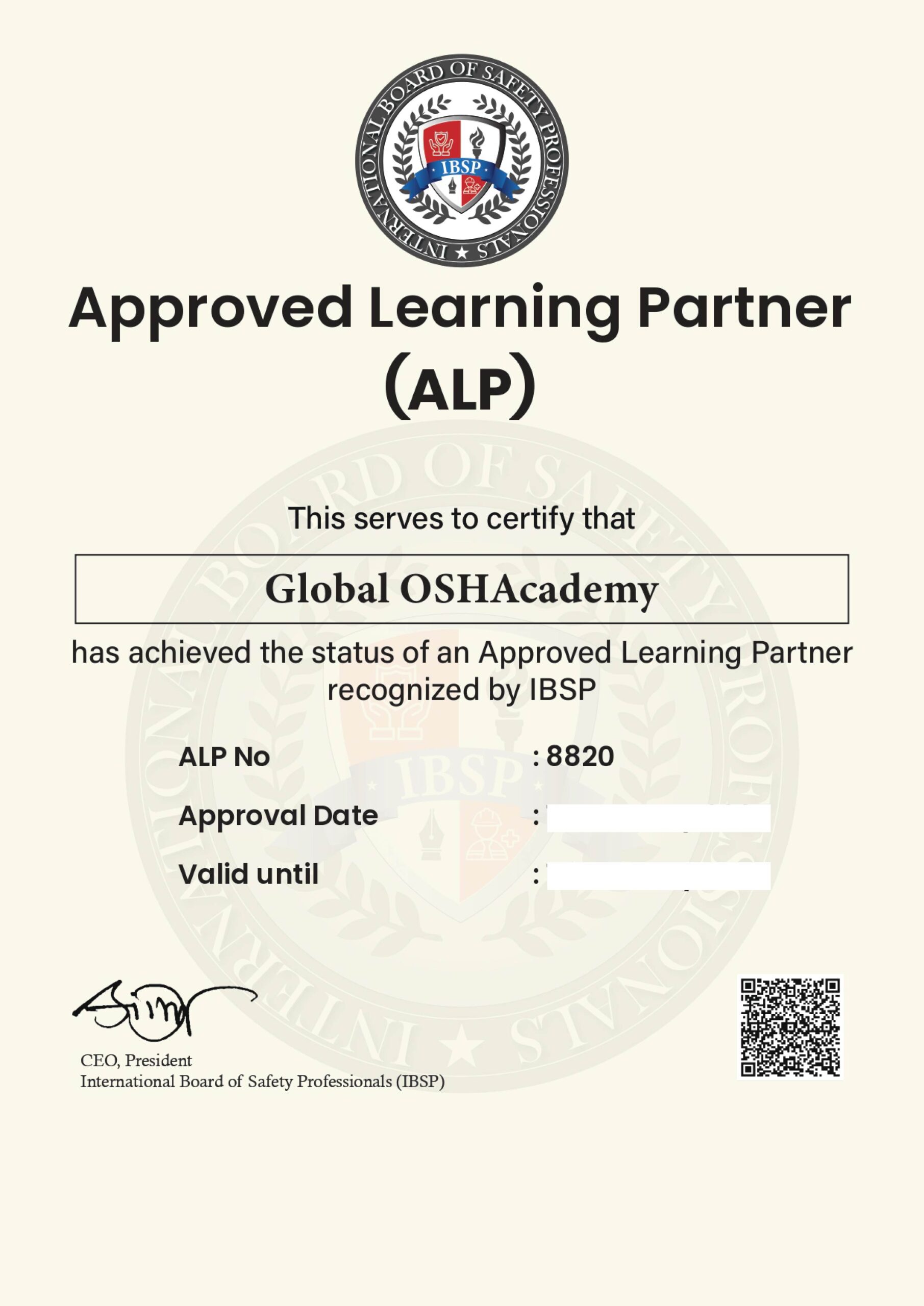 We are officially accredited by the International Board of Safety Professionals (IBSP), a recognized body dedicated to advancing standards in occupational safety and health. This accreditation confirms that our programs align with industry best practices and global competency frameworks, supporting professional development worldwide.